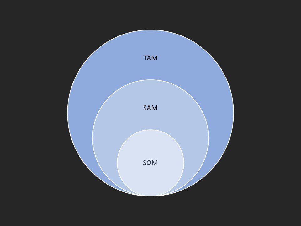 TAM zeigt dem Investor, was potentiell möglich wäre, wenn das Unternehmen durch entsprechende Ergänzungen des Produktportfolios und des Geschäftsmodells in sämtliche Segmente des Marktes hineinwachsen könnte.